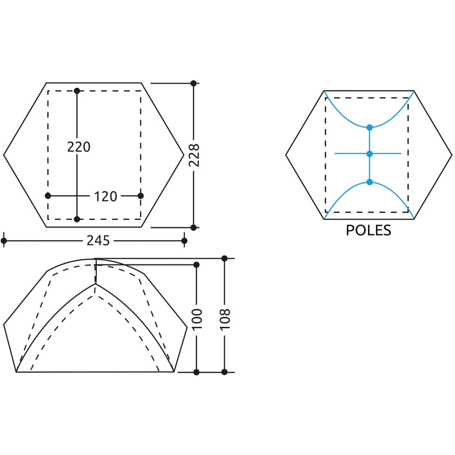 Merkmale: kompaktes und leichtes Zwei-Personen-Zelt mit Doppelwand; selbstragende Struktur mit integriertem Gestänge, ausgestattet mit Schnellclipsystem für eine einfache und schnelle Montage; zwei breite Eingänge mit geräumigem Vorraum auf beiden Seiten für mehr Schutz; Netzwand Innen für maximale Belüftung; zwei Innentaschen zur Aufbewahrung von Gegenständen; leichte, strapazierfährige und wasserdichte Außenwand mit verdeckten Reißverschlüssen, zwei großzügigen Belüftungsöffnungen; faltbare Bodenklappen an allen Seiten der Außenwand; die Außenwand wird mit einstellbaren Riemen mit Metallösen und Velcro®-Klettband am Gestände befestigt; Außenwand mit Zeltspannleinen, die für eine einfache und sichere Spannung sorgen; Befestigungssystem des Zeltbodens mit einstellbarer Schnur für eine einfache Positionierung des Zelts auch auf unebenen Flächen; 15 cm V-Profil Aluminiumheringe; inkl. Packbeutel, Heringe und Spannleinen
