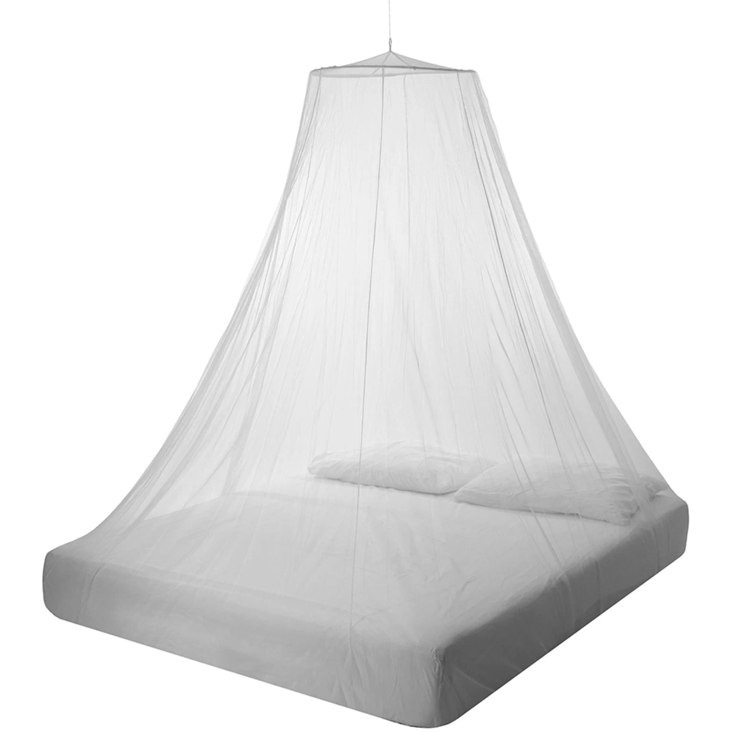 Das Care Plus Mosquito Net Bell Impregnated ist ideal für Weltreisen. Dieses imprägnierte Netz ist für 2 Personen geeignet, glockenförmig und mit einem Aufhängepunkt versehen. Es ist dank des integrierten flexiblen Rings in der Spitze formstabil. Mit dem Aufhängeset, das im Lieferumfang enthalten ist und aus Seil, Aufhängehaken, Nägeln und Sicherheitsnadeln besteht, lässt sich jedes Moskitonetz leicht aufhängen. Bringen Sie über Ihrem Bett eine Befestigung für das Netz an oder spannen Sie horizontal über Ihrem Bett eine Schnur, an der das Moskitonetz befestigt werden kann. Das Moskitonetz hat keinen seitlichen Eingang, man hebt es kurz an um unter das Netz zu kommen. Ein zusätzlicher Eingang birgt die Gefahr, dass man diesen aus Versehen nicht schließt und somit Mücken und andere Flugwesen in das Netz gelangen können.