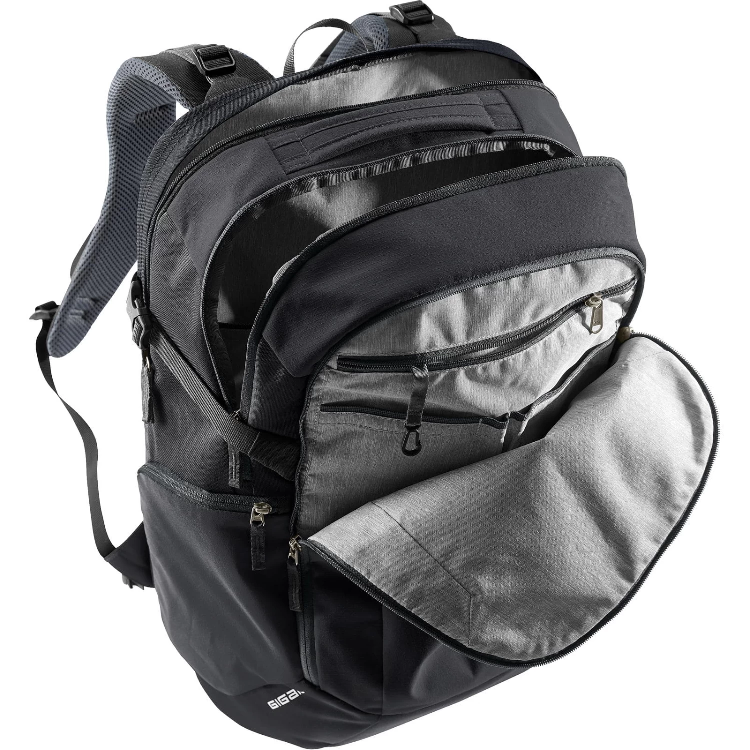 | Merkmale | abnehmbarer Hüftgurt, eine elastische Seitentasche, eine Seitentasche mit Reißverschluss, Frontfach mit Organizer und Reißverschlusstasche, gepolsterter Boden, gepolstertes Laptopfach mit separatem Reißverschluss und Einschubfach innen, großes Hauptfach (Ordnertauglich) mit integriertem Einschubfach, höhenverstellbarer Brustgurt, Lastkontrollriemen, Schlüsselhalterung, seitliche Kompressionsriemen, Tragegriff oben |