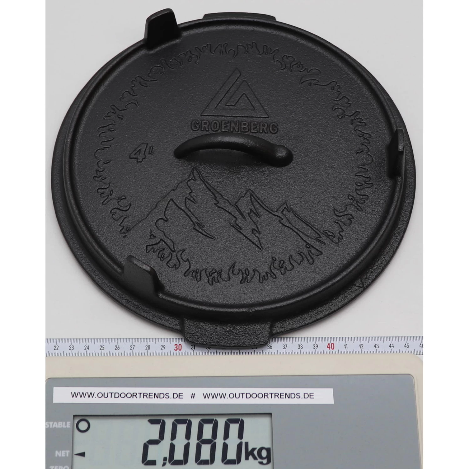 Der ASKJA POT 4L von Groenberg ist ein gusseiserner Topf mit hoher Wärmeleitfähigkeit und konstanter Rundumwärme. So werden Eintöpfe, Suppen, Gemüse, Fleisch oder Brot schonend zum Genuss. Der Deckel ist leicht konkav gewölbt damit das Kondenswasser im Inneren zum Rand hin abfließen kann und beim Anheben des Deckels nichts ins Gericht tropft. Ein Dampfauslass am Deckel verhindert lästiges Klappern oder Überkochen. Besonders Praktisch: Der Deckel lässt sich auch als Pfanne oder Servierteller nutzen und steht, dank seiner Füße auf der Oberseite, leicht erhöht und absolut sicher. Geeignet für Grill, Gasherd, Backofen oder offenes Feuer. Der Topf ist noch nicht eingebrannt und muss vor der ersten Benutzung entsprechend vorgenommen werden.
