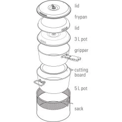 | Gewicht ca. | Deckel: 2.080 g, Topf: 3.645 g, gesamt: 5.725 g |