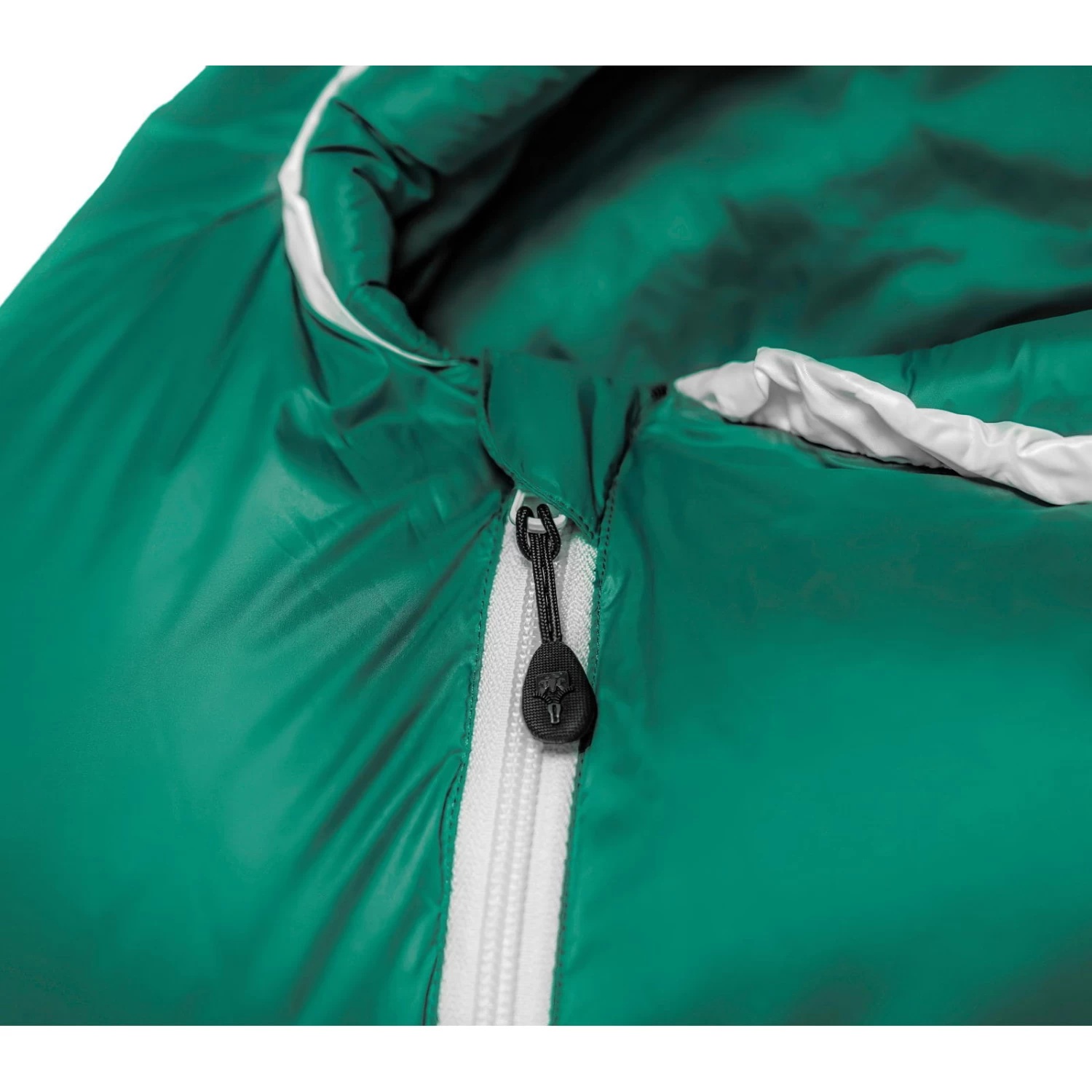 Der Biopod DownWool Subzero 185 und 200 von Grüezi Bag für Herren ist ein hochwertiger Mumienschlafsack mit innovativer DownWool Füllung für kühlere Temperaturen. Der 3-Saisonschlafsack ist ein Allrounder unter den leichten Schlafsäcken und optimal zum Wandern, Trekken, Campen und Reisen vom Frühjahr bis in den Herbst hinein. Seine innovative DownWool-Füllung, eine Mischung aus Daune, die für eine angenehme Isolation sorgt, und Wolle, die wie eine natürliche Klimaanlage wirkt, sorgt für ein hervorragendes Schlafklima. Außerdem macht die Wolle den Biopod DownWool Subzero unempfindlicher gegen Feuchtigkeit als reine Daune. Der Clou ist der nach unten hin runde Reißverschlussverlauf, durch den man, wenn es mal zu warm wird, bequem seine Füße auf der Oberseite des Schlafsacks ablegen kann. Sehr praktisch ist auch das Kopfkisseneinschubfach, hier einfach eine Fleecejacke einstecken und schon hat man ein unverrutschbares Kopfkissen.