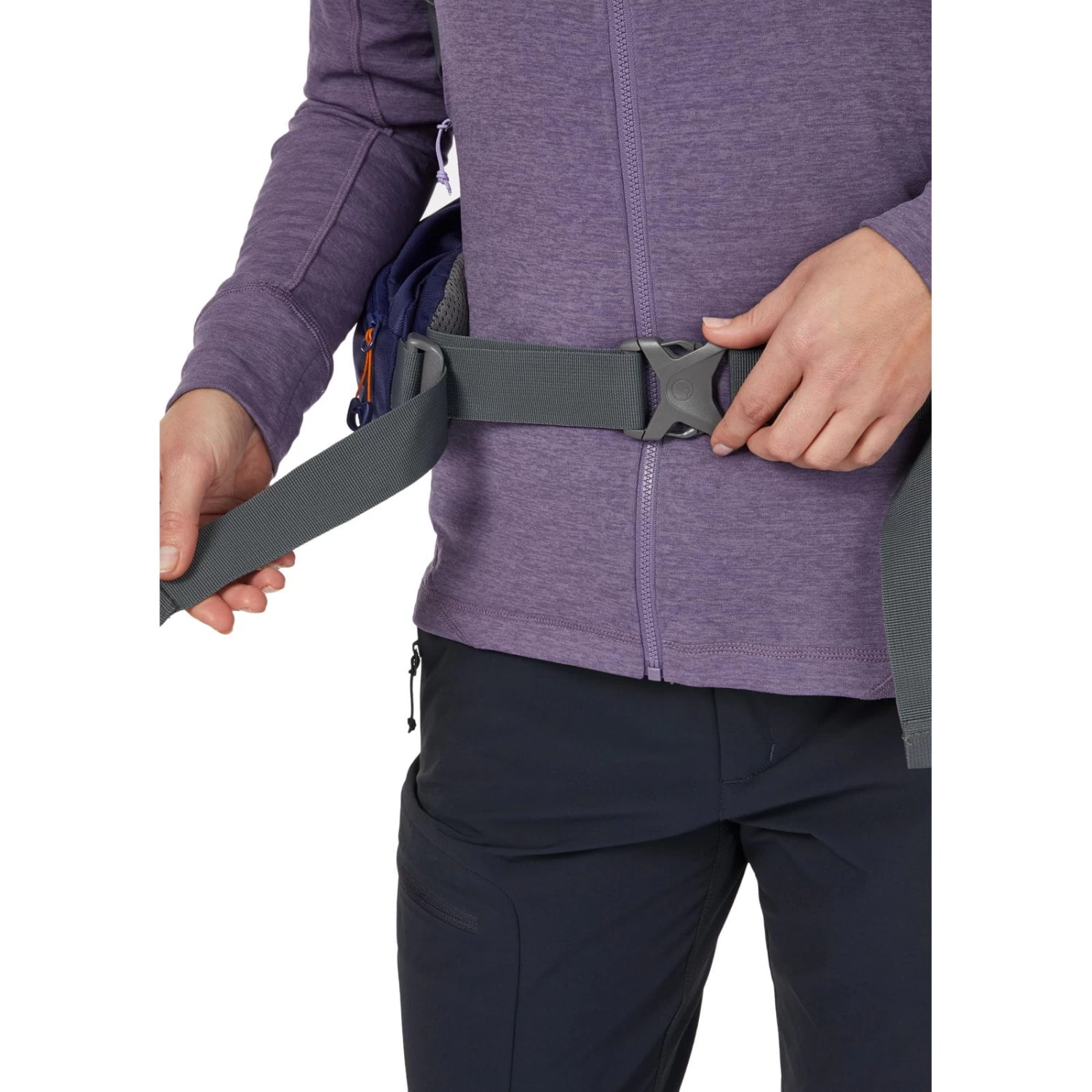 Der Sirac Plus ND40 von Lowe Alpine für Damen zeichnet sich durch das komfortable und leichte Air Contour™ X-Rückensystem aus und ist ideal für Rucksackreisen, Hüttenabenteuer, Gebirgs- und Trekkingtouren. Das verstellbare Air Contour™ X-Rückensystem, das speziell auf die weibliche Figur ausgelegt ist, erhöht den Tragekomfort, denn die strategisch platzierten Schaumstoffeinsätze polstern den Rücken und bilden gleichzeitig Luftkanäle, die für angenehme Kühle und Trockenheit sorgen. Der leichte, der Körperform angepasste Rucksack verlagert das Gewicht auf die Hüfte, so dass man sich in jedem Gelände frei bewegen kann, auch mit Gepäck für eine längere Tour. Mit dem Reißverschluss an der Vorderseite und einem separat zugänglichen Bodenfach, das durch eine innere Trennwand vom Hauptfach getrennt ist, lässt sich alles übersichtlich verpacken. Am gepolsterten Hüftgurt befinden sich praktische, leicht zugängliche Reißverschlusstaschen für Snacks oder einen Kompass. Ein geräumiges Deckelfach mit Schlüsselhalter bietet Platz für Wertsachen oder Dinge, die schnell griffbereit sein müssen. Der Trekkingrucksack ist für eine 3-Liter-Trinkblase ausgelegt und hat seitliche Netztaschen für Trinkflaschen, damit man unterwegs immer genügend Flüssigkeit zu sich nehmen kann. Außerdem verfügt er über Wanderstockbefestigungen, eine integrierte Regenhülle und ein elastisches Kordelzugsystem an der Vorderseite, das sich ideal zum Verstauen von nasser Ausrüstung eignet. Der Sirac Plus ND40 besteht aus recyceltem Material, ist stabil, bequem und hat ein Fassungsvermögen von 40 Litern, die sich bequem und mit guter Luftzirkulation auf mehrtägigen Wanderungen tragen lassen.