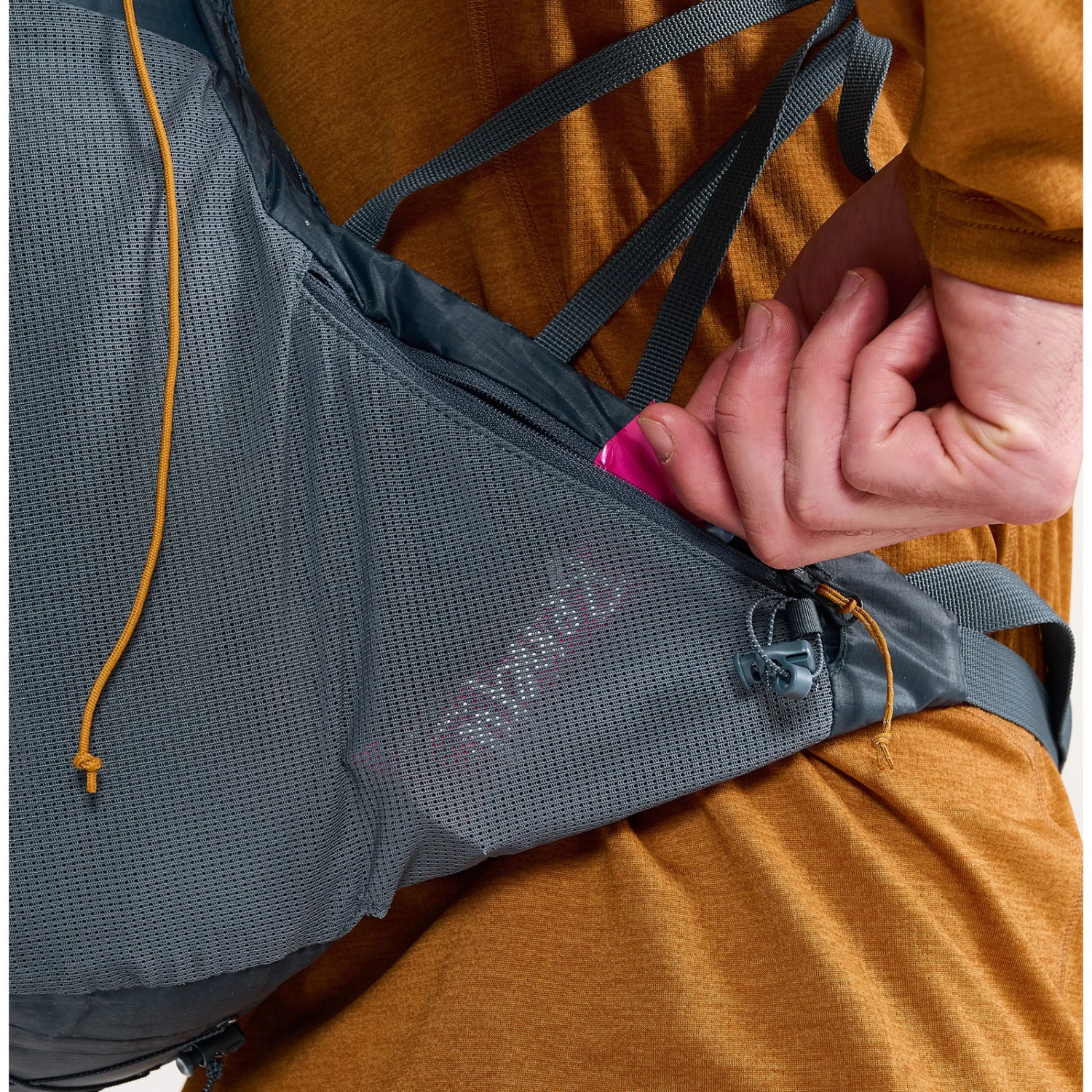 Der Trailblazer LT 20 von Montane ist die erste Wahl, wenn es auf Gewicht und Geschwindigkeit ankommt. Der Rucksack wiegt unter 300 g, ist robust und mit seiner TPU-Beschichtung zuverlässig bei jedem Wetter. Mit dem individuellen anpassbaren, ergonomischen COVALENT Gurt, ergibt sich eine körpernahe Passform für besonders hohe Stabilität, ohne dabei die Bewegungsfreiheit einzuschränken. Zudem sind die Schultergurte zusätzlich mit Reißverschlusstaschen ausgestattet und die zwei Brustgurte sind leicht zu verstellen, welches den Komfort erhöht. Der Hüftgurt besitzt zwei Reißverschlussfächer aus Contact Air Mesh Plus Material. Der Wanderrucksack hat mehrere leicht erreichbare Fächer mit Reißverschlüssen und ist auch für Trinkblasen geeignet.