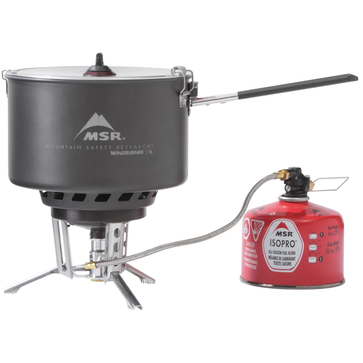 Das windsichere und druckregulierte Design des WindBurner Group von MSR sorgt für schnelles Kochen auch bei Wetter, bei dem andere Kocher versagen. Das einzigartige Kochersystem lässt sich praktisch und schnell verwenden. Der innenliegender Strahlungsbrenner macht den WindBurner Group Kocher praktisch windsicher. Der eingebaute Wärmeaustauscher, das windsichere Design und der integrierte Regler sorgen selbst bei Wind und Kälte für schnelles Kochen und ausgezeichnete Treibstoffeffizienz. Die gesamte Serie (als Zubehör erhöltlich) beinhaltet modulare, stapelbare Komponenten und komplette Kochsysteme, die für Solotouren ebenso wie für Gruppen geeignet sind. Das WindBurner Group Kochersystem ist ausreichend für zwei bis vier Personen und beinhaltet den Kocher, einen 2,5 Liter Topf mit Wärmetauscher, einen Deckel oben aber er wird ohne Kartusche geliefert.