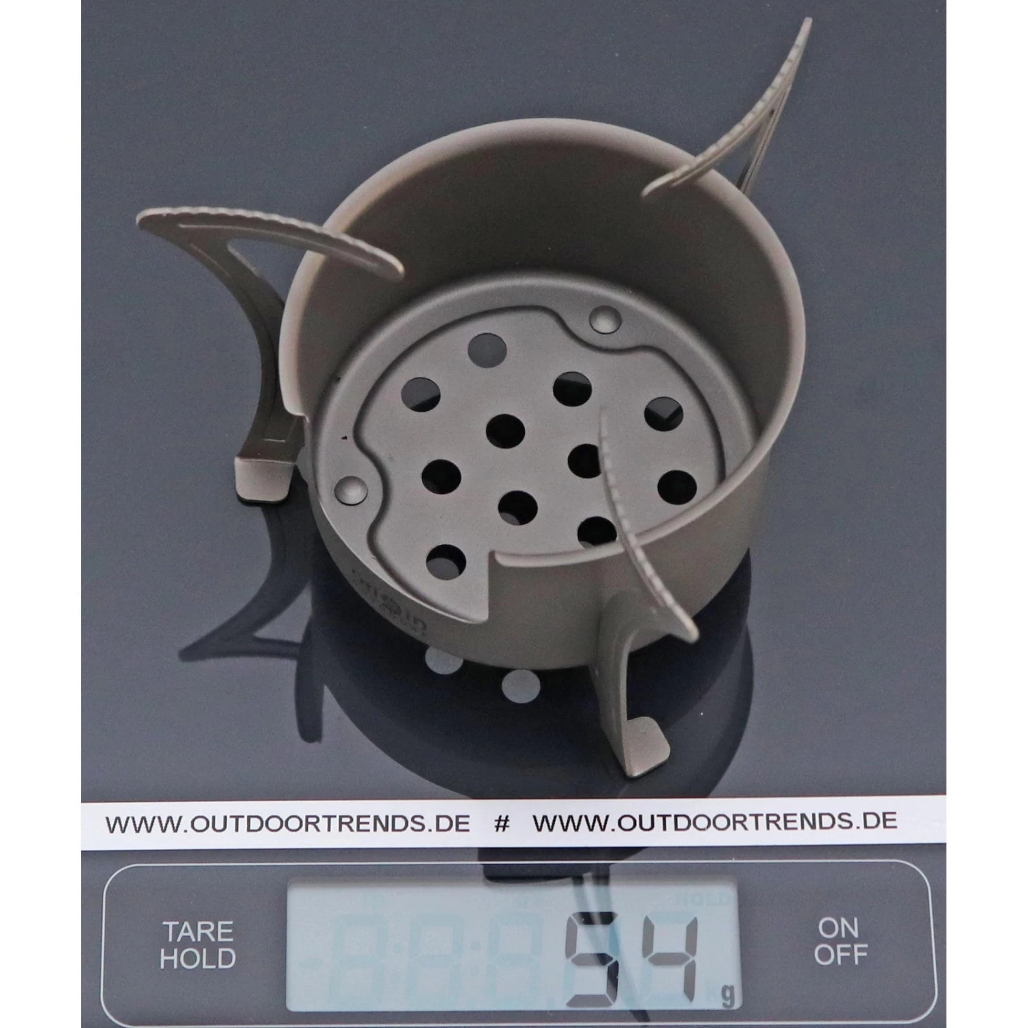 | Gewicht ca. | Deckel: 14 g, Packsack: 14 g, Spiritusbrenner: 41 g, Kochergestell: 54 g |