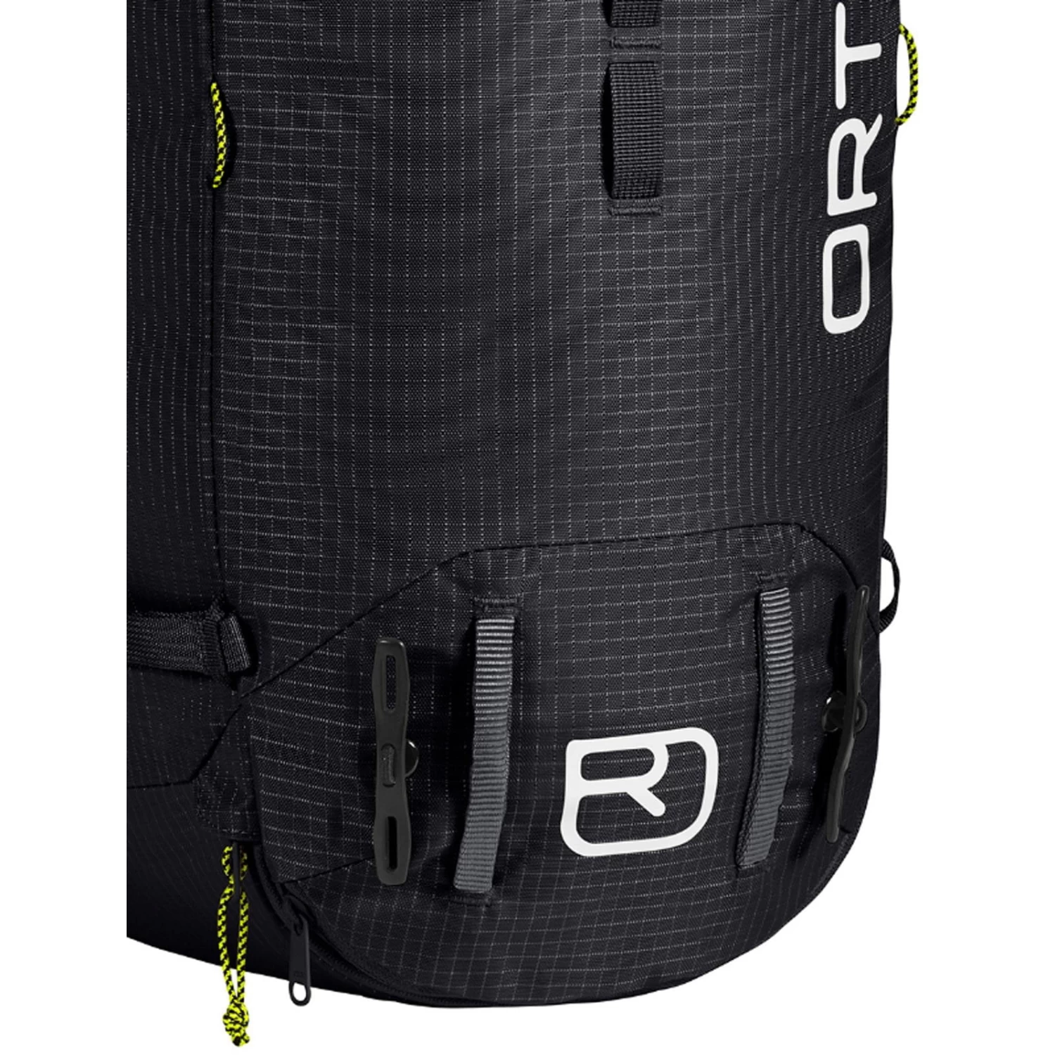 Der TRAD 26 S von ORTOVOX ist ein leichter, robuster Kletterrucksack für alpine Touren, wo durchdachte Funktion und Leichtigkeit gefragt sind. Im Deckelfach mit Schlüsselhalterung finden Kleinigkeiten ihren Platz, während das Hauptfach alternativ über die große Öffnung oben oder den umlaufenden Reißverschluss gut zugänglich ist. Von außen schützt robustes 420D Ripstop Material mit 88% recyceltem Polyamid-Anteil vor Abrieb in schroffem Felsgelände. Dank Materialschlaufen, Pickel- und Seilbefestigungen kann Ausrüstung sicher transportiert werden, ohne unnötig aufzutragen. Das bequeme Rückensystem verteilt dabei die Last optimal über den Rücken und sorgt für ein angenehmes Tragen, wobei der Aluminiumrahmen zum Klettern herausgenommen werden kann. Auch ist die Rückenlänge so konzipiert, dass beim Klettern genug Bewegungsfreiheit im Nacken bleibt, wenn man viel nach oben blicken muss. Eine Trinksystemvorbereitung, Notfallkarte und Brustgurt mit Signalpfeife runden den vielseitigen Kletterrucksack ab. Das Rückensystem dieses Kletterrucksacks zeichnet sich durch einen leichten, herausnehmbaren Aluminiumrahmen und ein Vollkontakt-Tragesystem aus. Der Rahmen ist sehr flexibel, aber in der Horizontalen steif, um möglichst viel Gewicht aufzunehmen. Aufgrund seiner 3D Form liegt der Kletterrucksack eng am Rücken, garantiert viel Bewegungsfreiheit und höchsten Tragekomfort.