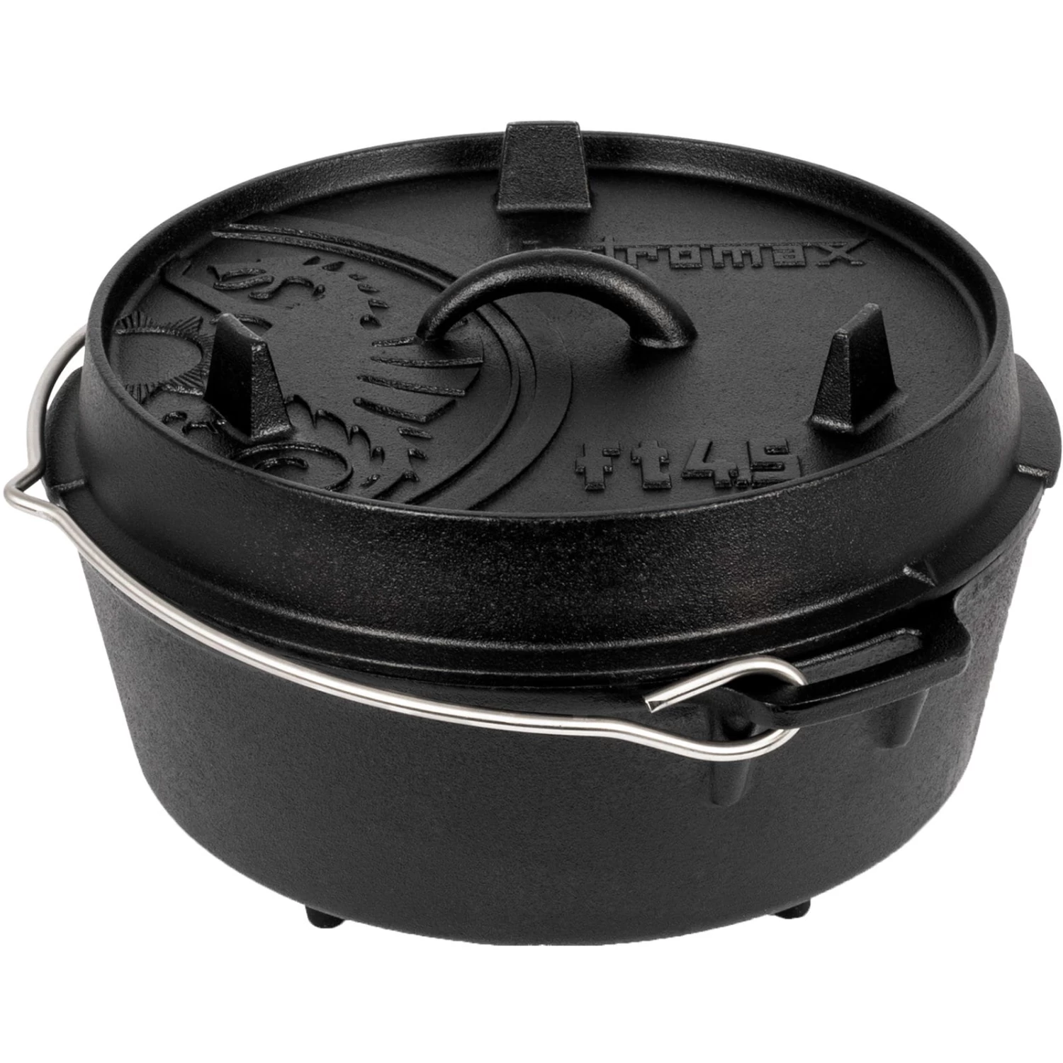 Er ist schwarz und er ist robust! Der Feuertopf ft 4.5 von Petromax ist ein vollständig aus Gusseisen gefertigter Topf von exzellenter Qualität. Weitläufig auch als Dutch Oven bezeichnet, ist der Petromax Feuertopf ideal für das Kochen im Freien und im heimischen Backofen geeignet. Die exzellente Wärmeleitung und die Speicherung der Wärme über einen langen Zeitraum sowie die extreme Robustheit zeichnen den Topf aus. Der ideale Begleiter für Ihre Camping-, Outdoor- und Freizeitaktivitäten. Mit ihm garen Sie Speisen, wie z. B. Fleisch und Gemüse, sehr schonend im eigenen Saft über offenem Feuer oder im Backofen. Der Deckel des Feuertopfs kann zudem optional als Servierplatte oder Pfanne genutzt werden. Dank der vorbehandelten Oberfläche (seasoned finished) können Sie den robusten Petromax Feuertopf ft4.5 aus Gusseisen sofort einsetzen.