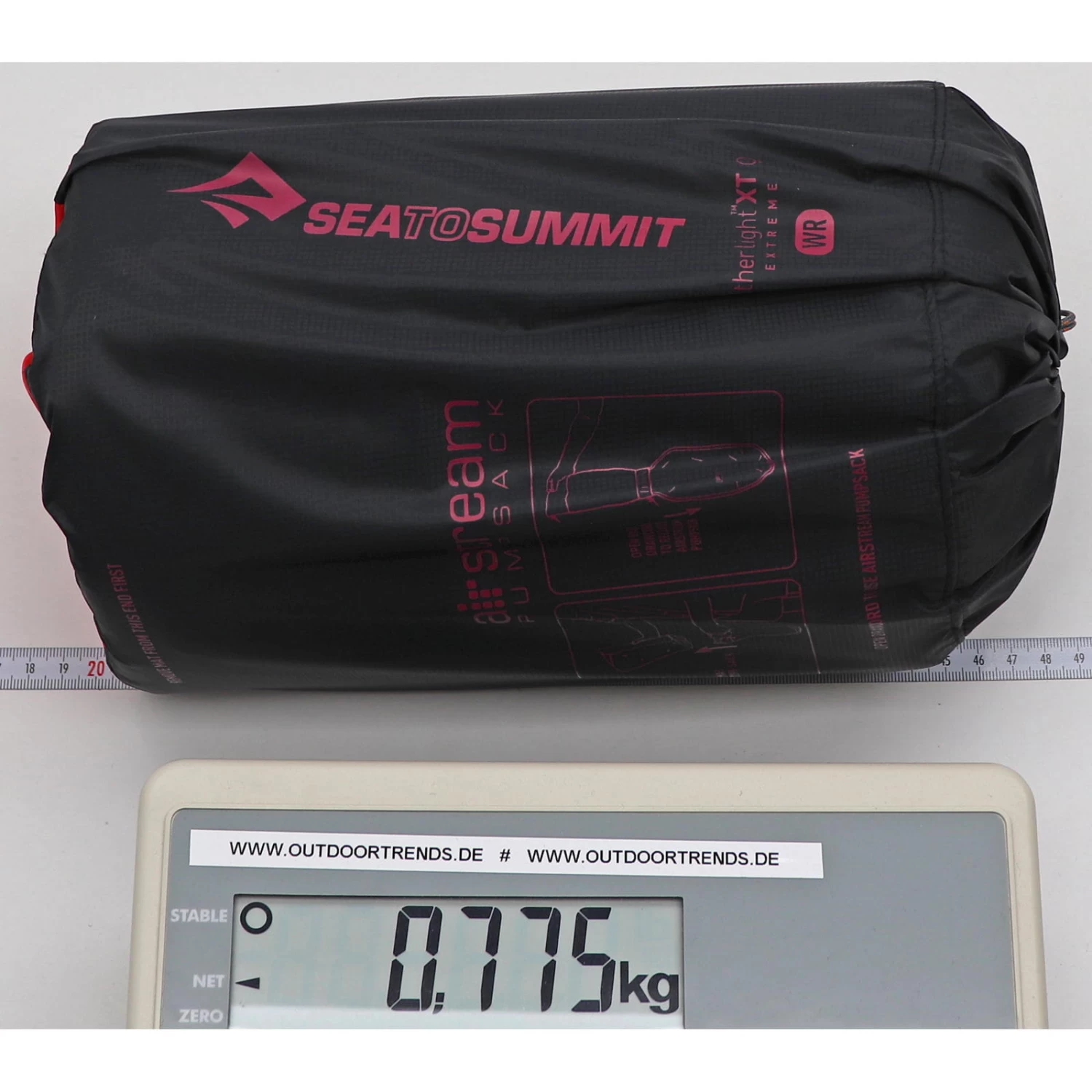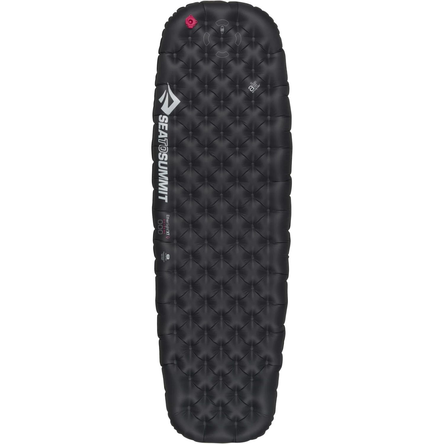 Mit das wichtigste an der Ether Light XT Extreme Women’s ist die Air Sprung Cell Technologie. Statt der sonst üblichen Trennwandkonstruktion wird hier eine punktgeschweißte Konstruktion aus ineinander verbundenen Kammern verwendet welche eine großflächige Matrix bildet. Die Kammern nennt Sea to Summit Air Sprung Cell und sie funktionieren wie eine Taschenfederkern-Matratze: jede Kammer kann sich so verformen wie es benötigt wird. Damit passt sie sich hervorragend dem Körper an und sorgt für eine bessere Druckverteilung. Stützt man sich zum Beispiel mit dem Ellenbogen auf, wird die Matte nur an dieser Stelle verformt. Neben der Air Sprung Technologie bietet die Ultralight Extreme Women’s Mat wie der Name es schon verrät eine Isolierung aus ThermoLite. In Kombination mit dem geräuschlosen Exkin Platinium Material (ist ein superleichtes, mit metallener Oberfläche versehenes Reflektionsmaterial) bietet die Insluated Version ein Plus beim R-Wert und damit mehr Schutz von unten. Sie bietet kleinstes Packmaß bei hervorragenden Liegeeigenschaften. Um das Aufblasen und Entlüften zu erleichtern, hat Sea to Summit ein multifunktionelles 3in1 Ventil entwickelt: Durch die erste, große Öffnung kann die Matte schnell aufgeblasen werden ohne dabei Luft entweichen zu lassen. Drückt man mit dem Finger etwas dagegen, kann Luft dosiert abgelassen werden um den optimalen Innendruck zu erhalten. Öffnet man beide, so kann die Luft schnell entweichen und die Thermo-Schlafmatte lässt sich schneller zusammenpacken. Für die Oberfläche verwendet Sea to Summit ein 30/40D Nylon Ripstop Material, welches außen mit einem TPU Film versehen ist. Dadurch ist die Matte leise, rutschhemmend und dank mitgeliefertem Repair Kit schnell geflickt wenn notwendig. Außerdem dabei: ein Packsack mit dem sich die Matte aufblasen lässt.