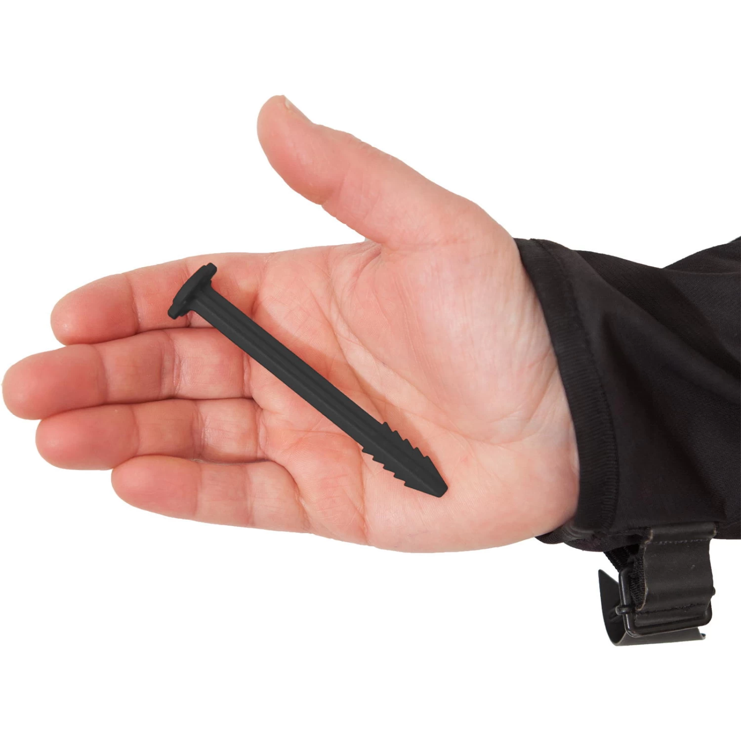 Die Recycling-Heringe bieten aber noch weitere Vorteile. Sie sind ultraleicht, stoßfest, supersicher und schonen dazu die Umwelt. Ihre spitz zulaufende Form ermöglicht ein einfaches Einschlagen, ohne dass scharfe Kanten entstehen, die das Zeltgewebe beschädigen. Ihr x-förmiger Querschnitt mit Sägezahnprofil sorgt für sicheren Halt in unterschiedlichsten Böden. SwissPiranha-Heringe werden flach im Boden versenkt, wodurch keine Stolper- und Verletzungsgefahr besteht. Ideal für Familien, da sich spielende Kinder nicht am Hering verletzen können. Zusätzlich verdichtet der flache Kopf den Untergrund und sorgt so für eine deutlich höhere Ausreißkraft. Einkerbungen halten die Zeltleinen zuverlässig am Platz und sorgen für beste Verankerung. Verschmutze Heringe können in der Spülmaschine gereinigt werden und um den Wertstoffkreis vollkommen zu schließen, werden ausgediente BlackFisk-Heringe von SwissPiranha wiederverwertet.