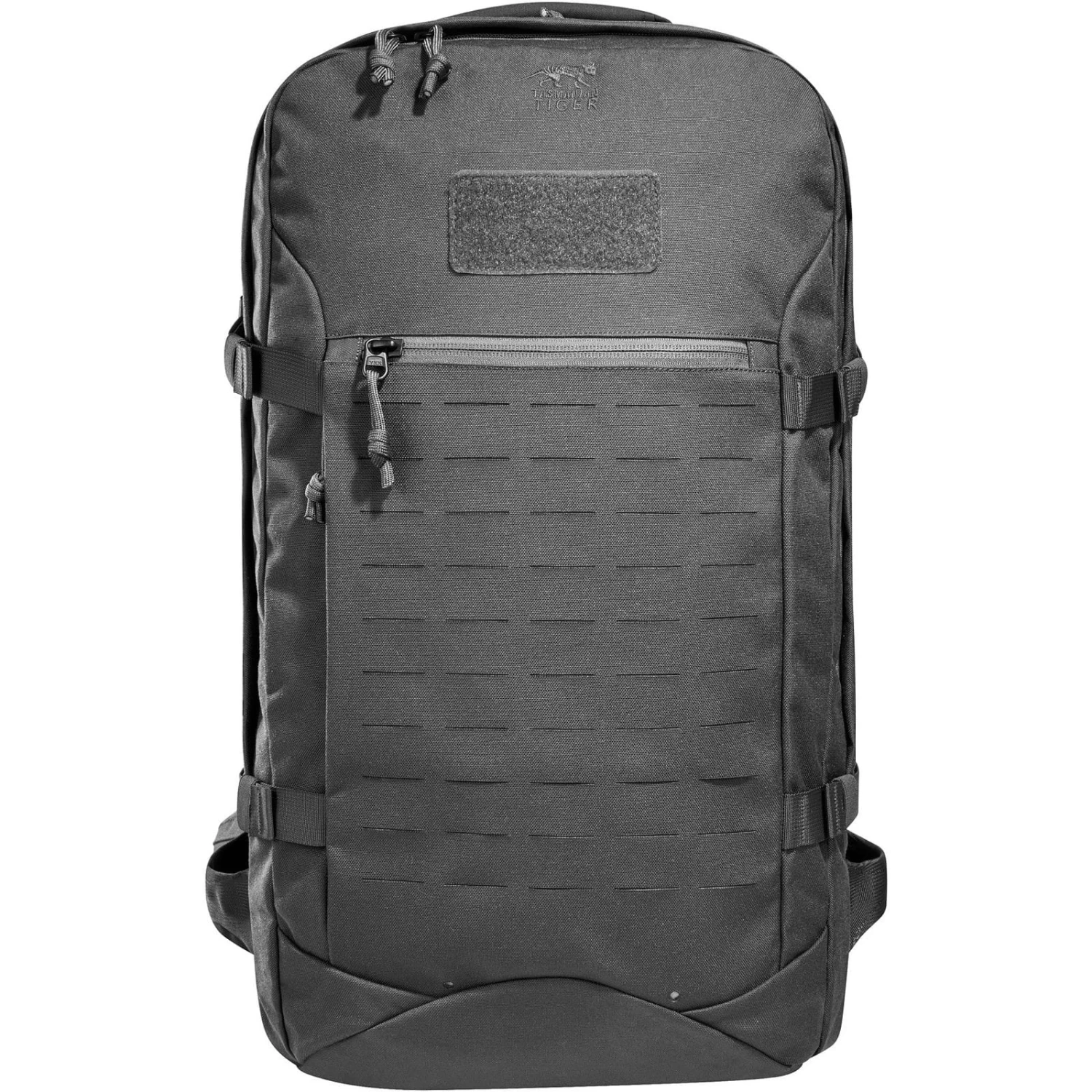 Der Mission Pack MKII von Tasmanian Tiger ist ein bewährter Rucksack mit 37 Liter Volumen, zwei Hauptfächern und mehreren Innentaschen. Der Mission Pack MK II bietet neben einer Unterteilung durch Innentaschen im rückseitigen Hauptfach auch lange Molle-Klettbänder für die individuelle Bestückung bzw. für modulare Erweiterungen. Auch im vorderen Hauptfach befinden sich drei Molle Bänder. Auf den Seiten und der flachen Reißverschluss-Fronttasche ist der Rucksack mit Molle in Lasercut-Ausführung versehen. Eine von außen zugängliche, seitliche Reißverschlusstasche ist für Dokumente vorgesehen. Der Rucksack verfügt über drei Schlauch- bzw. Antennendurchlässe in den Hauptfächern, so dass auch eine Trinkblase untergebracht werden kann. Im Bodenfach ist eine Regenhülle verstaut. Die mit Reißverschlusstaschen versehenen Hüftflügel sind abnehmbar.