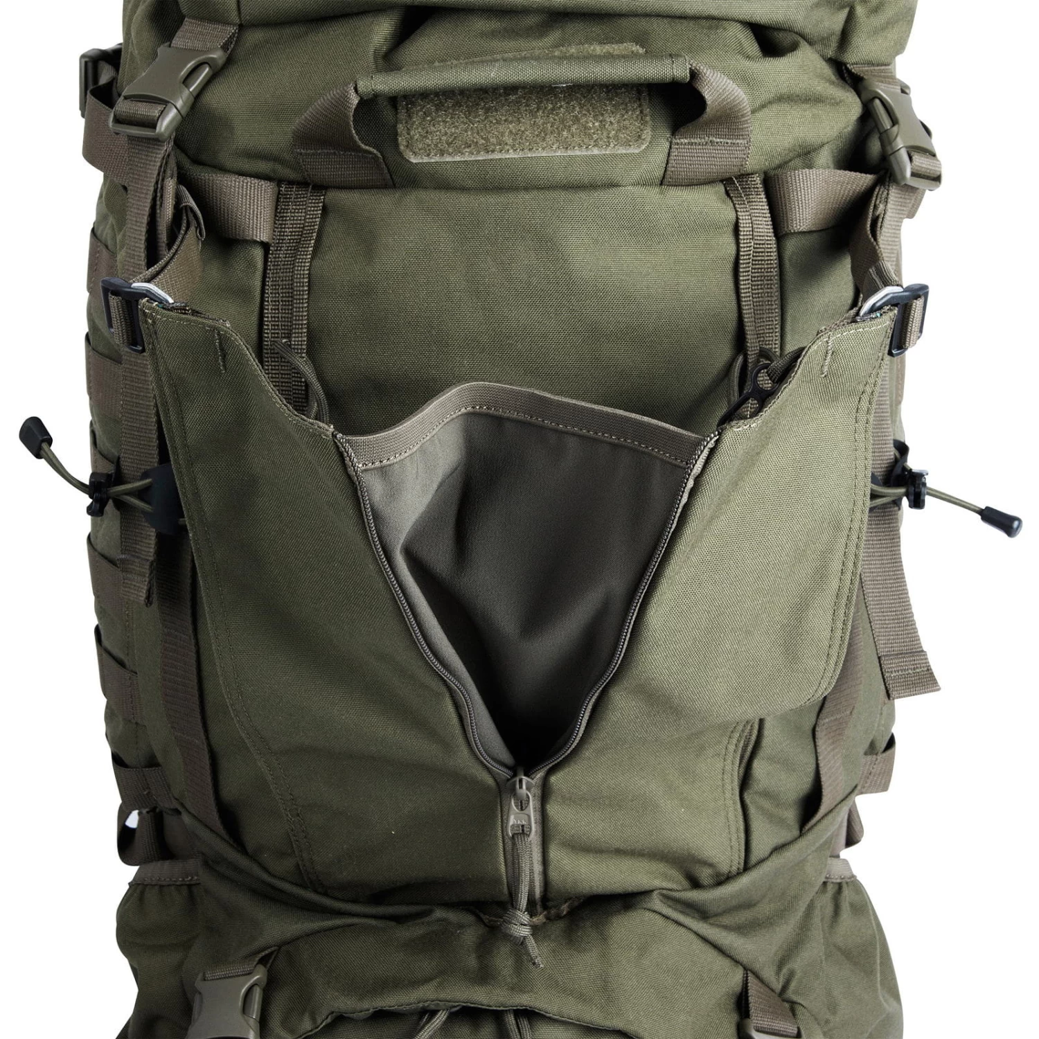 | Merkmale | 2-Stufen-Packsack, Bodenfach mit separatem Zugang von außen, D-Ringe auf den Schultergurten, Deckelfach mit Reißverschluss außen, erweiterbares, elastisches Einschubfach vorne (für Helm geeignet), gepolstert Tragegriff hinten oben, gepolsterter Hüftgurt, gepolsterter Rücken, gepolsterter Tragegriff vorne oben, Halterung für Trinkblase, höhenverstellbarer Brustgurt, höhenverstellbarer Deckel, Kompressionsriemen unten, Lastkontrollriemen, Materialschlaufen auf dem Deckel, Materialschlaufen auf den Schulterträgern für Brille etc., MOLLE-System auf allen wichtigen Befestigungsflächen zur Erweiterung mit Zusatztaschen, Pickelhalterung, Regenhülle im Deckelfach, Reißverschlussfach unter dem Deckel innen, Schlauchdurchführung für Trinksystem, Schlüsselhalterung, Seilfixierung unter dem Deckel, seitliche Kompressionsriemen, Stockhalterung, verstellbare Rückenlänge, zwei seitliche Einschubfächer, Zwischenboden zwischen Bodenfach und Hauptfach kann geöffnet werden |
