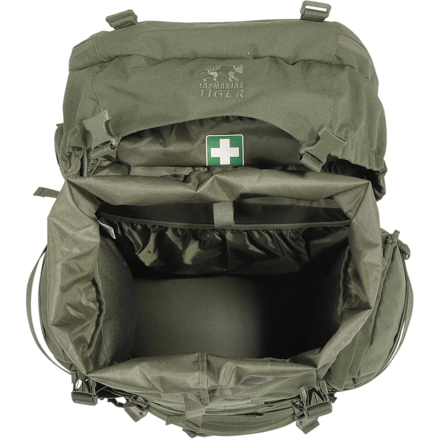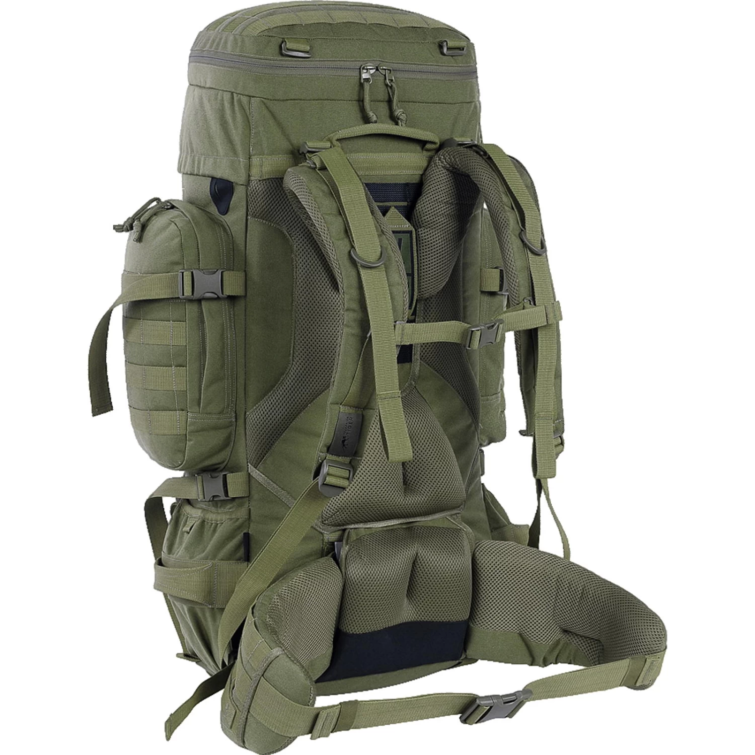 | Merkmale | abnehmbarer Hüftgurt, Antennendurchlässe am Hauptfach, Bodenfach mit separatem Zugang von außen, Brustgurt abnehmbar, Deckelfach mit Reißverschluss außen, Deckelfach mit Reißverschluss innen, diverse Materialschlaufen, Einschubfach innen, gepolsterter Hüftgurt, Halterung für Trinkblase, höhenverstellbarer Brustgurt, Lastkontrollriemen, Materialschlaufen auf dem Deckel, MOLLE-System auf allen wichtigen Befestigungsflächen, Schlauchdurchführung für Trinksystem, Seilfixierung unter dem Deckel, Seitentaschen mit MOLLE-System außen, seitliche Kompressionsriemen, seitliche Skibefestigung (Skibreite max. 130 mm), seitliche Tragegriffe, Tragegriff hinten oben, umlaufende Bodenkompression, verstellbare Rückenlänge, Wanderstock-/ Eisaxthalterung, Zwischenboden zwischen Bodenfach und Hauptfach kann geöffnet werden |