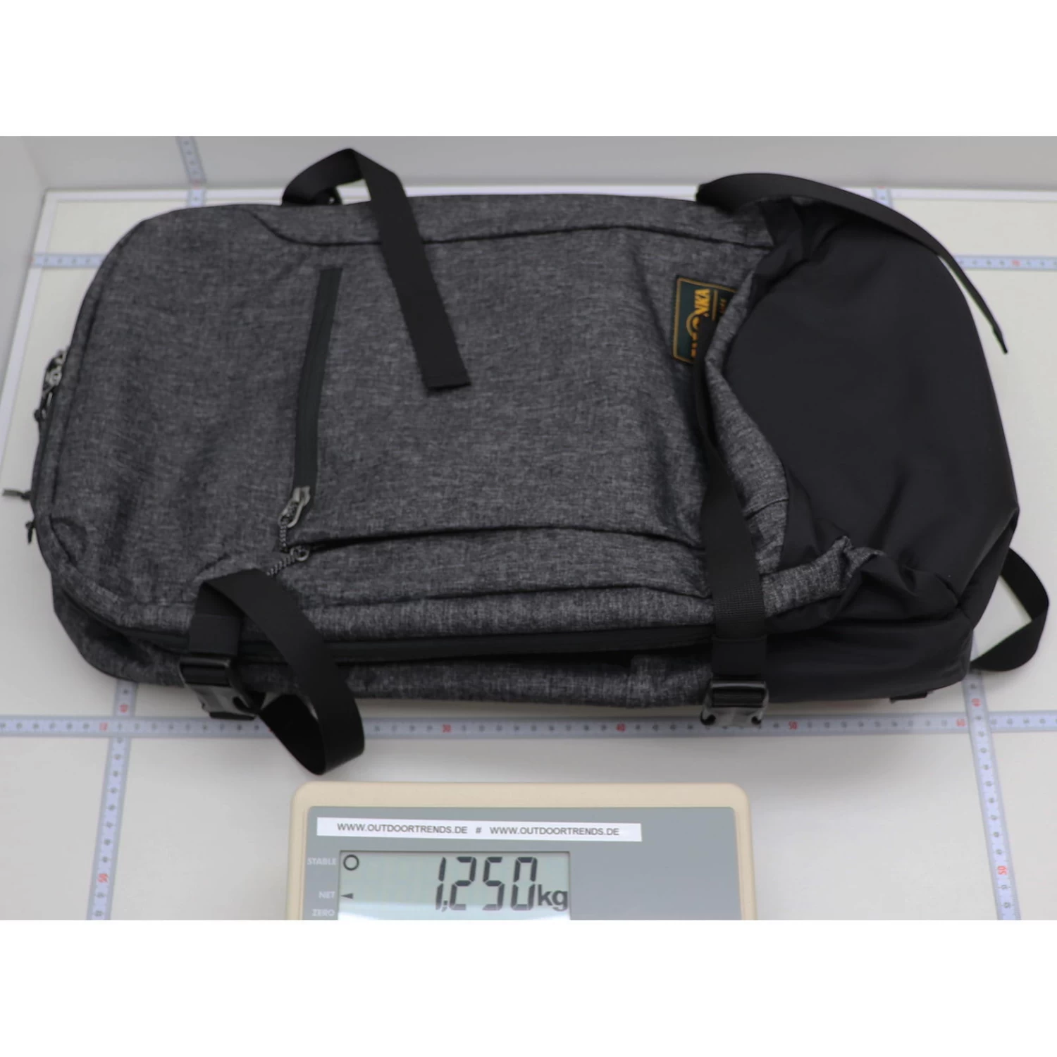 | Merkmale | Brustgurt abnehmbar, einfacher Hüftgurt mit Bauchtasche (kann separat genutzt werden), Einschubfach seitlich, Fach am Rücken mit Reißverschluss zum Verstauen der Rucksackträger, gepolsterter Rücken, gepolstertes Laptopfach am Rücken mit Reißverschluss, großes Hauptfach mit Kompressionsriemen, höhenverstellbarer Brustgurt, Reißverschlussfach im Hauptfach, Schlüsselhalterung, seitliche Kompressionsriemen, verstaubare Schulterträger, vorderes Hauptfach mit zwei großen Einschubfächern und Organizer, zwei gepolsterte Tragegriffe, zwei Reißverschlussfächer vorne drauf |