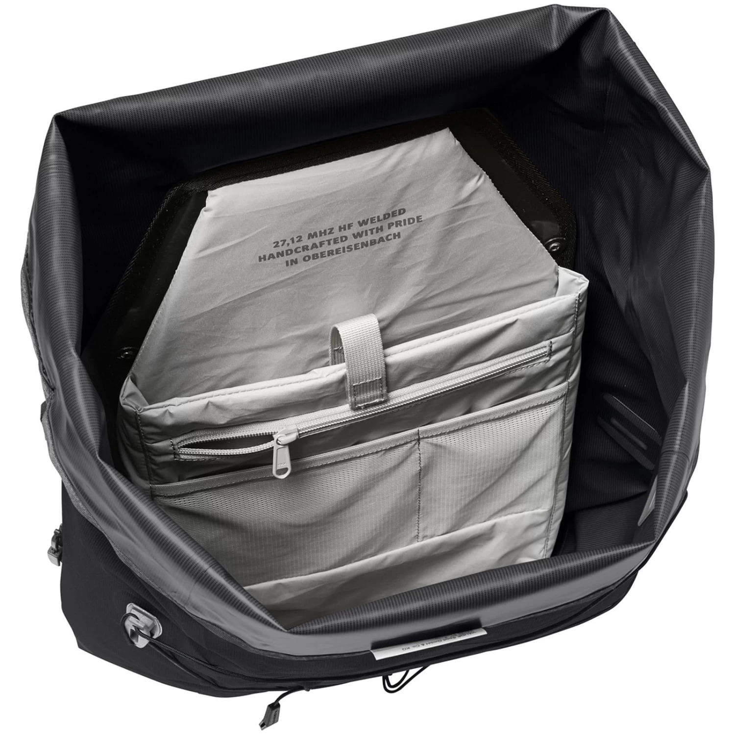 | Material | 100% Polyester (recycelt, 75D, Polyurethan beschichtet), 100% Polyamid (64% recycelt, Polyurethan + TPU beschichtet, 400D), PVC-frei |